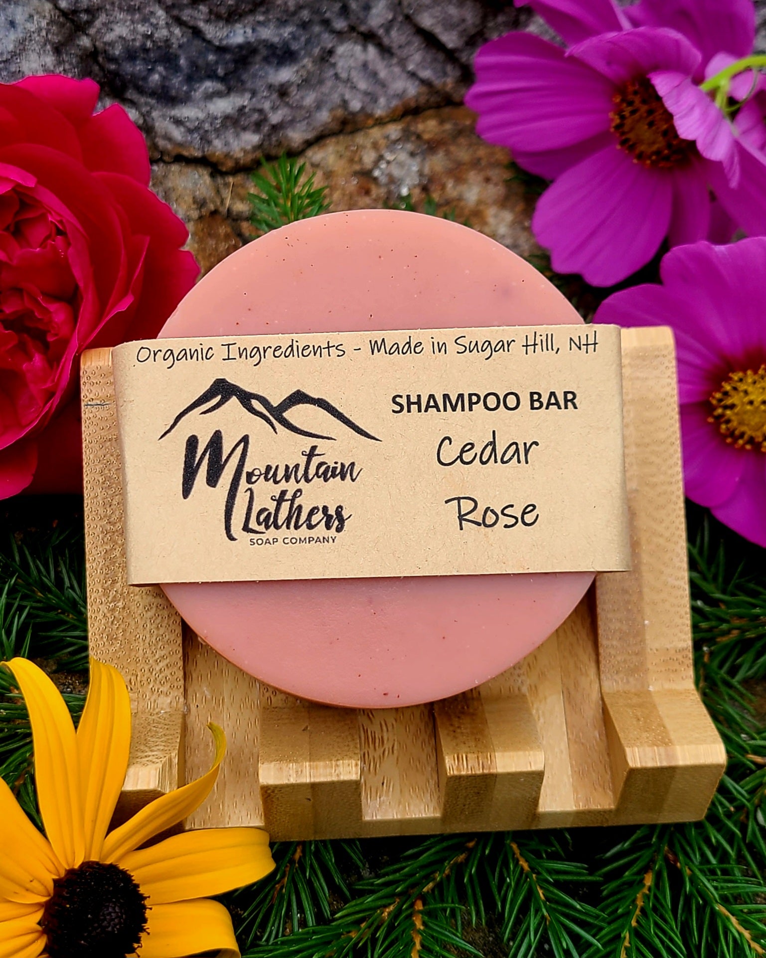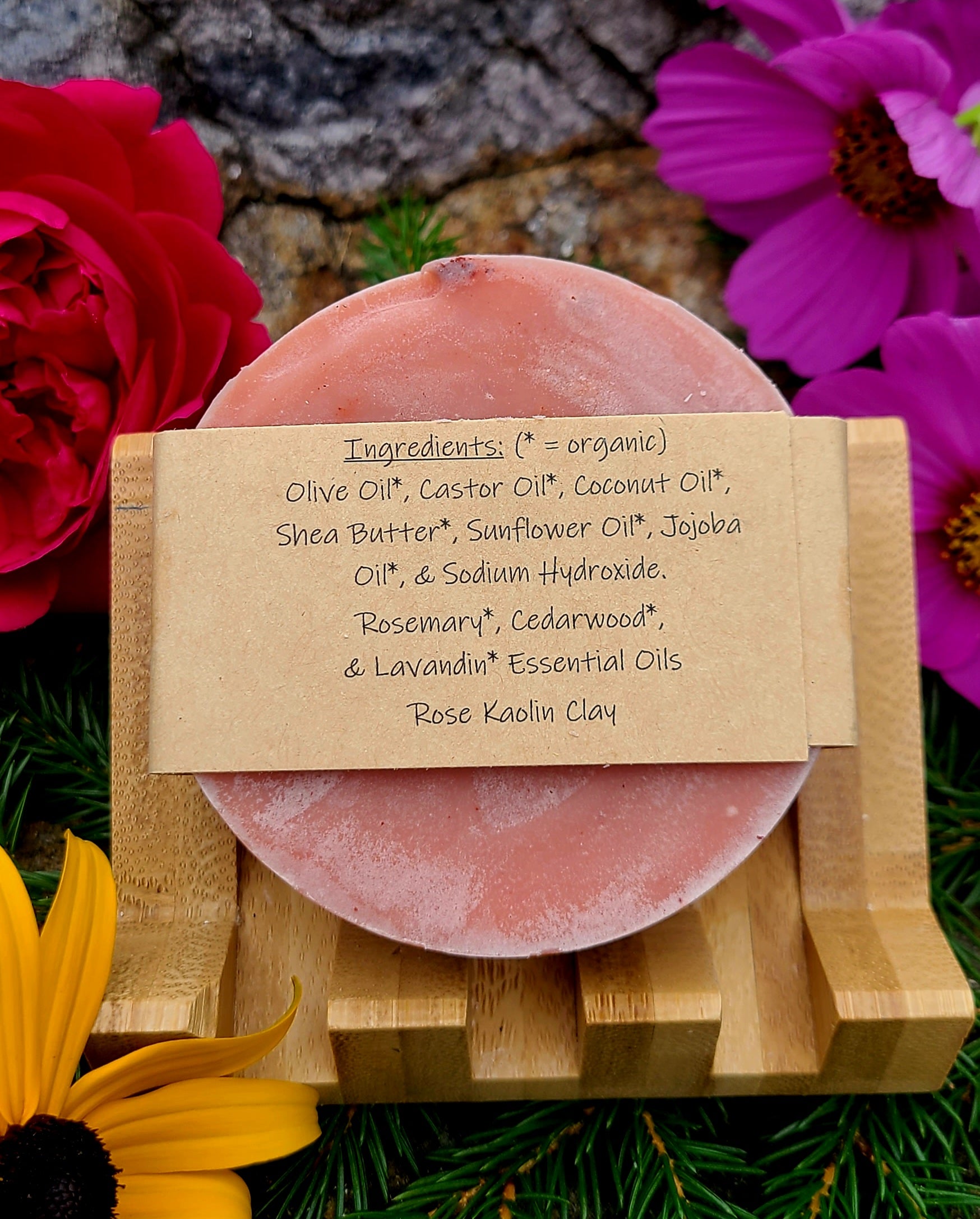 Cedar Rose -- Scented with Rosemary*, Cedarwood*, & Lavandin* essential oils. Contains Rose Clay.
