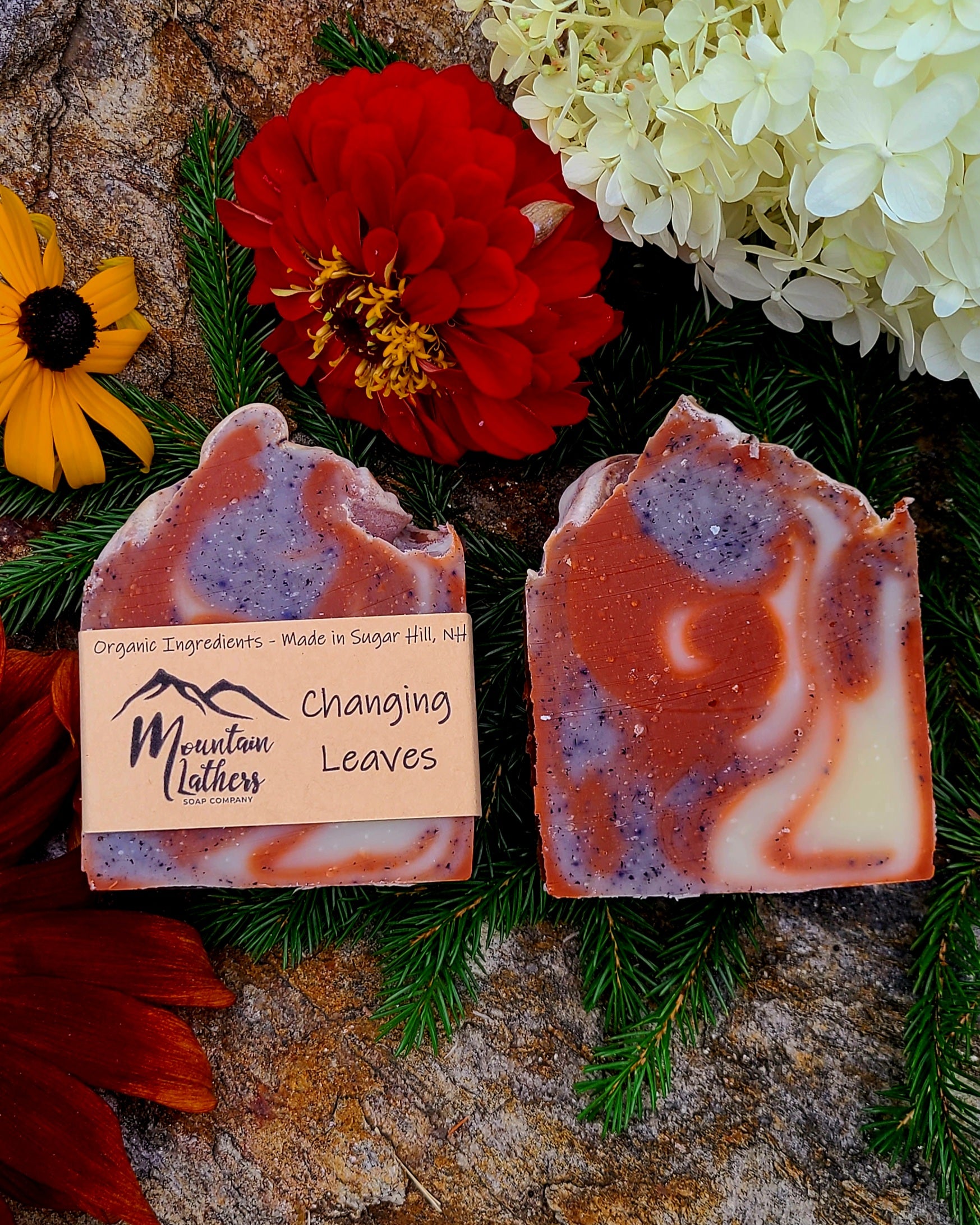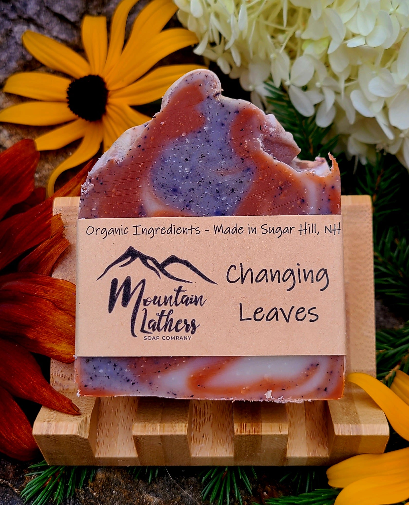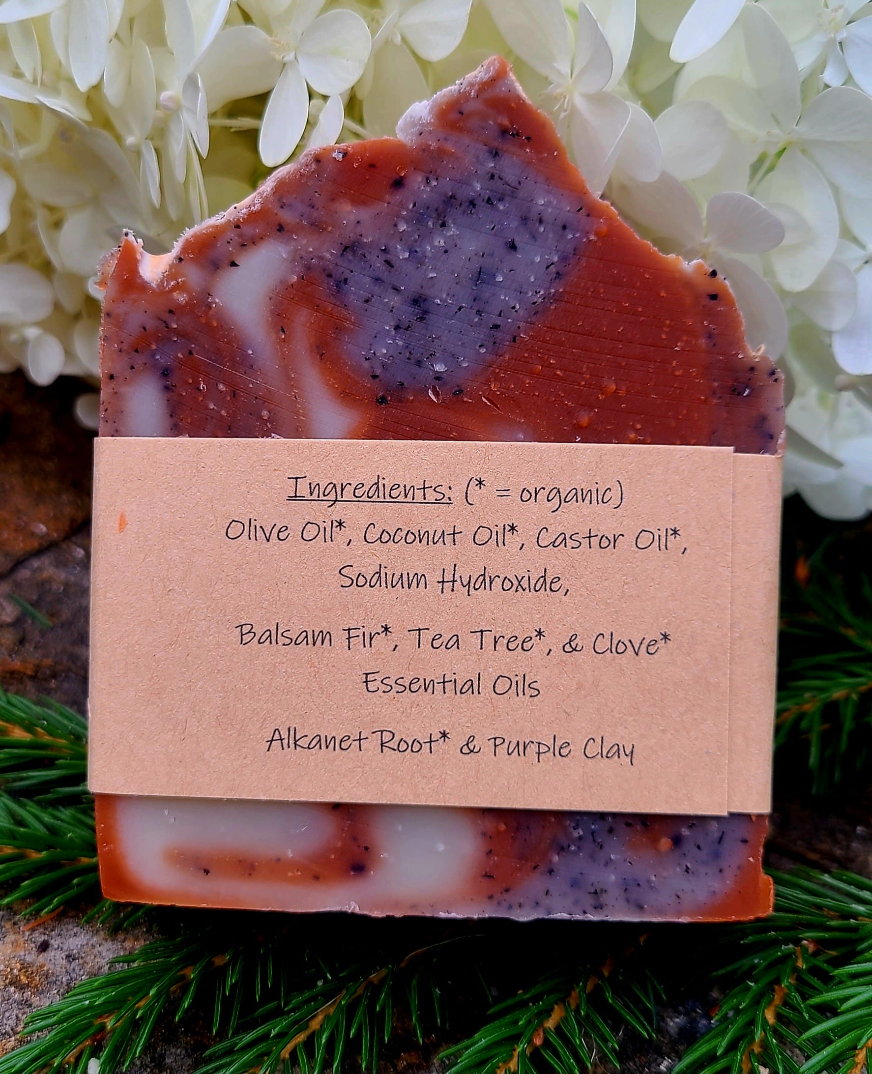 Changing Leaves: Scented with Balsam Fir*, Clove*, & Tea Tree* essential oils. Contains Purple Kaolin Clay & Alkanet Root*.