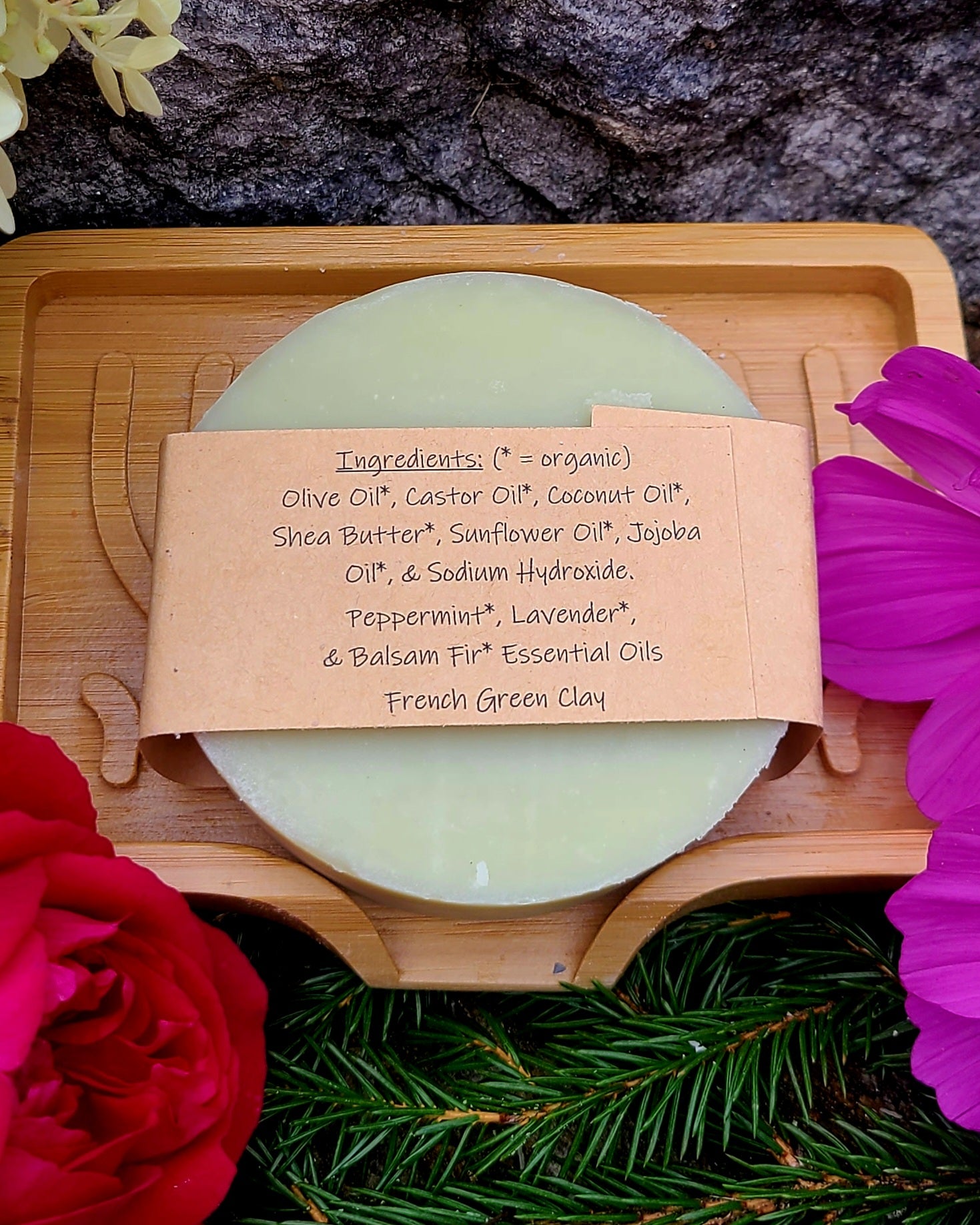Fir Needle & Mint -- Scented with Peppermint*, Lavender*, & Balsam Fir* essential oils. Contains French Green Clay.